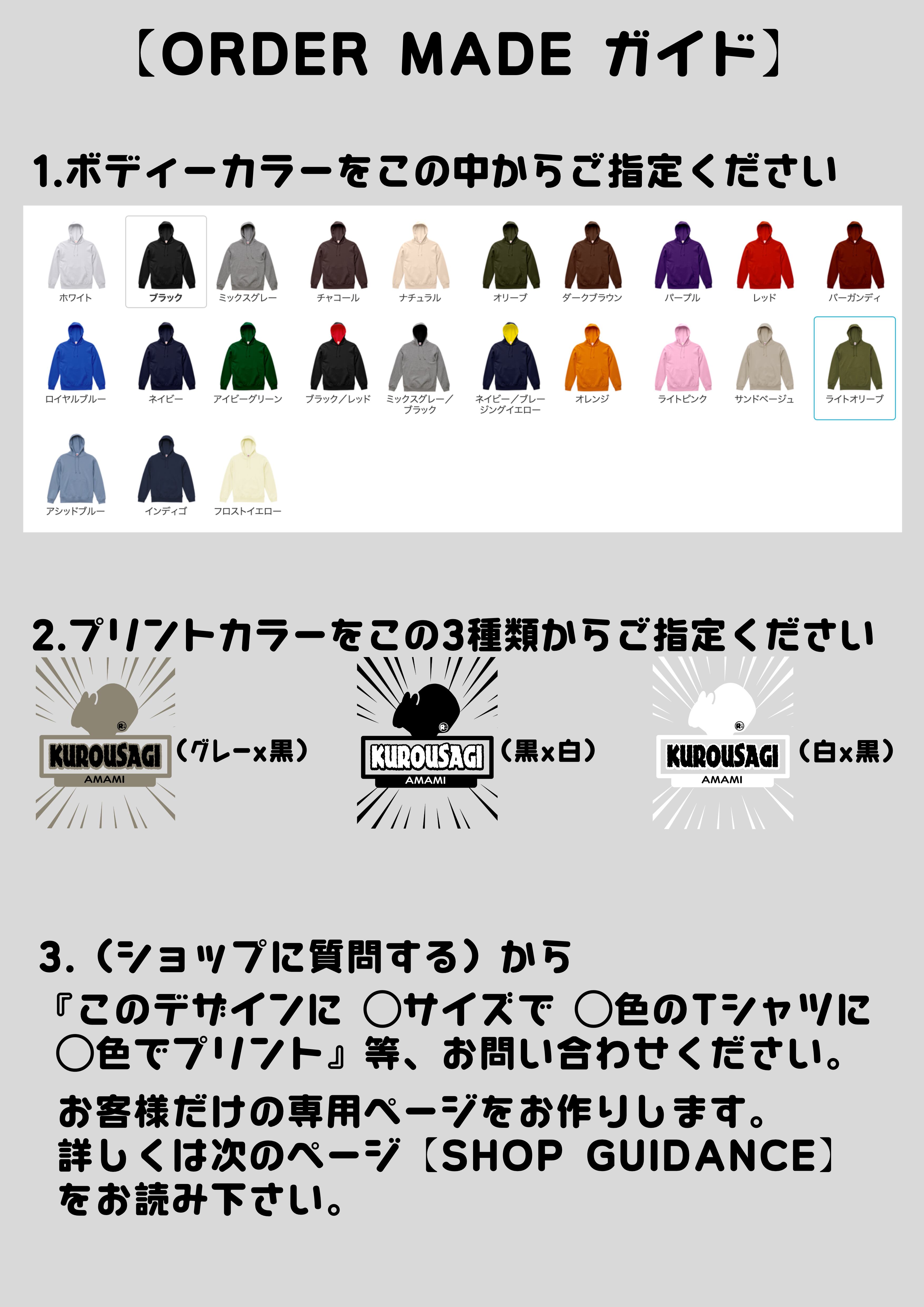 『このデザインに ◯サイズで ◯色のTシャツに ◯色でプリント』等、ご要望に合わせてお客様専用の注文ページをお作りいたします。