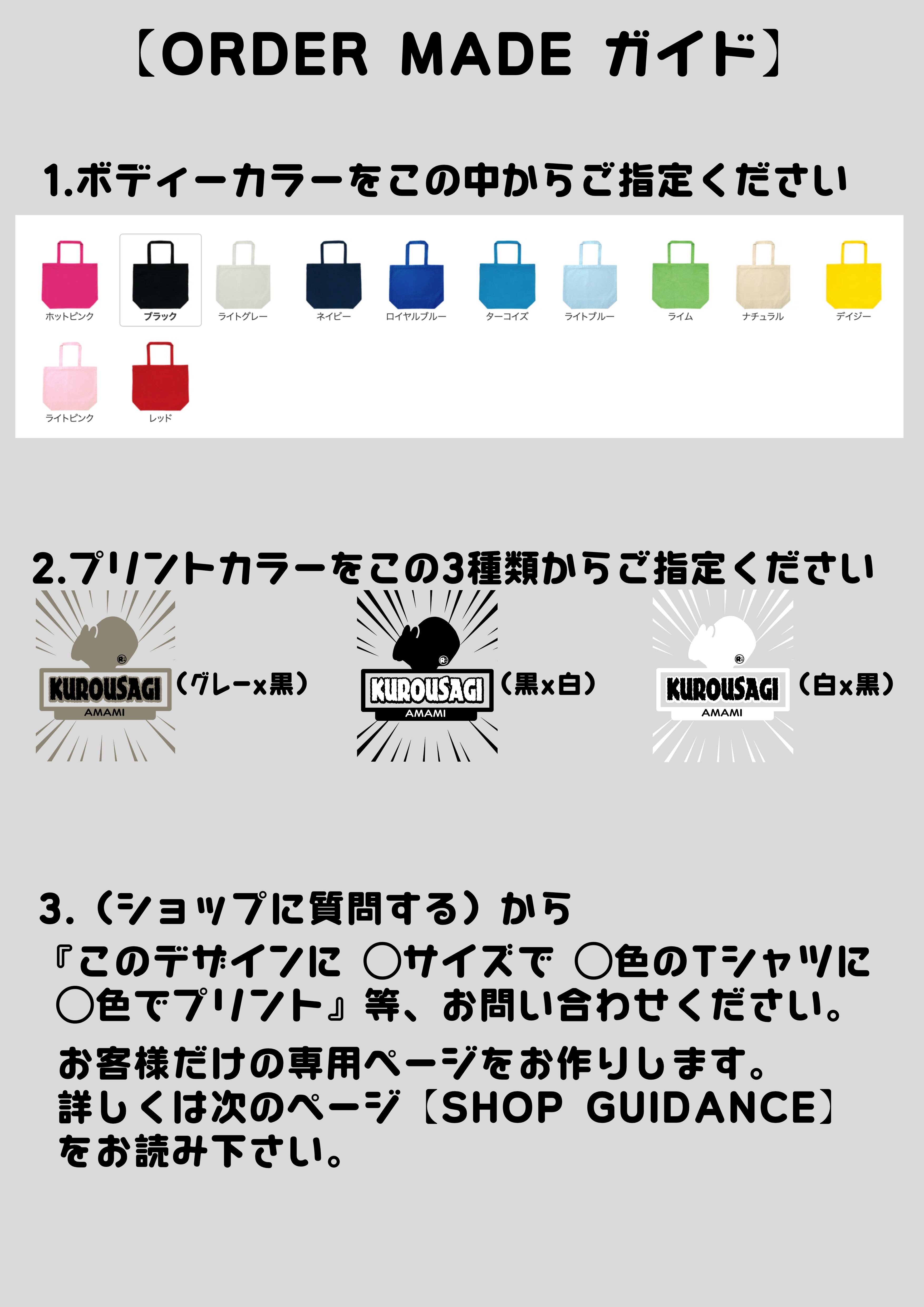 『このデザインに ◯サイズで ◯色のTシャツに ◯色でプリント』等、ご要望に合わせてお客様専用の注文ページをお作りいたします。